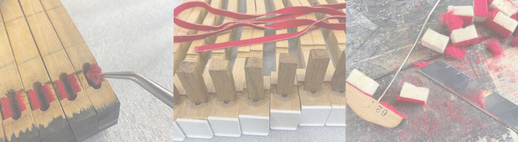 <消耗や虫喰いにより、鍵盤がぶれるようなった時にするフェルトの貼替修理>